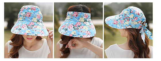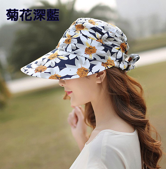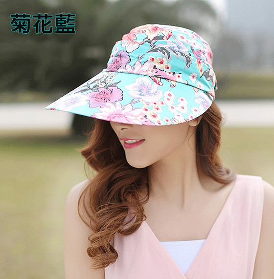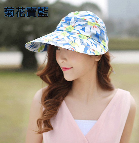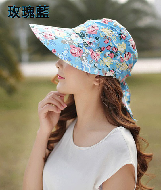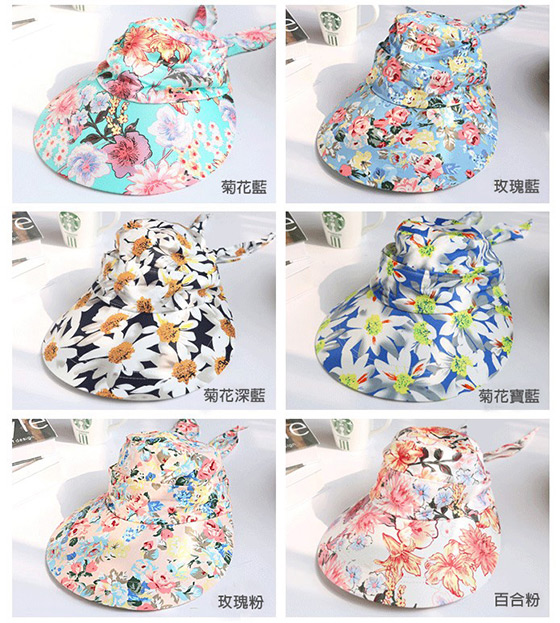 A款大沿花款可拆卸太陽防曬帽-顏色:菊花藍/玫瑰藍/菊花深藍/菊花寶藍/玫瑰粉/百合粉