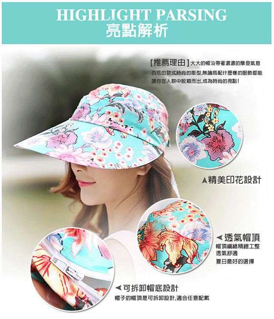A款大沿花款可拆卸太陽防曬帽